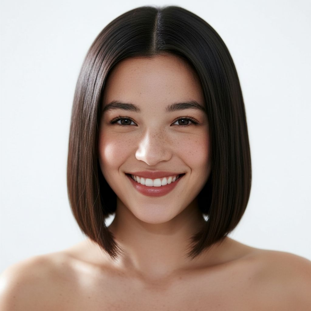 Our AI preserves your exact facial features, skin tone, and expression — only the hair changes. The result looks like a real photo, not a filter. Share with your stylist to show exactly what you want.